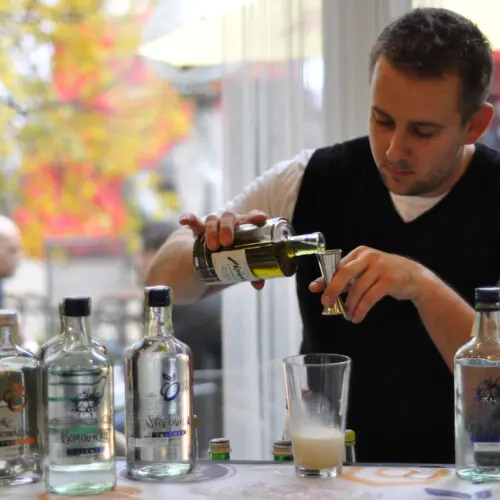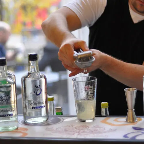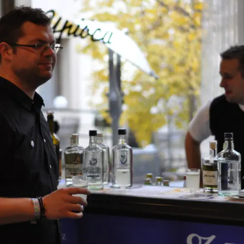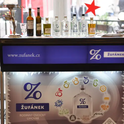 Mezi nimi byl i náš lihovar Žufánek, za který jsme předvedli portfolio ovocných destilátů – Slivovice, Hruškovice, Meruňkovice a Borovičky a absintů St. Antoine, La Grenouille a L’Ancienne. A být mezi barovými profesionály znamená předvést i nějaký koktejl. Výběr padl na nejnovější Borovičku (koktejl Junipelder) a St. Antoine (Saint Suissesse).