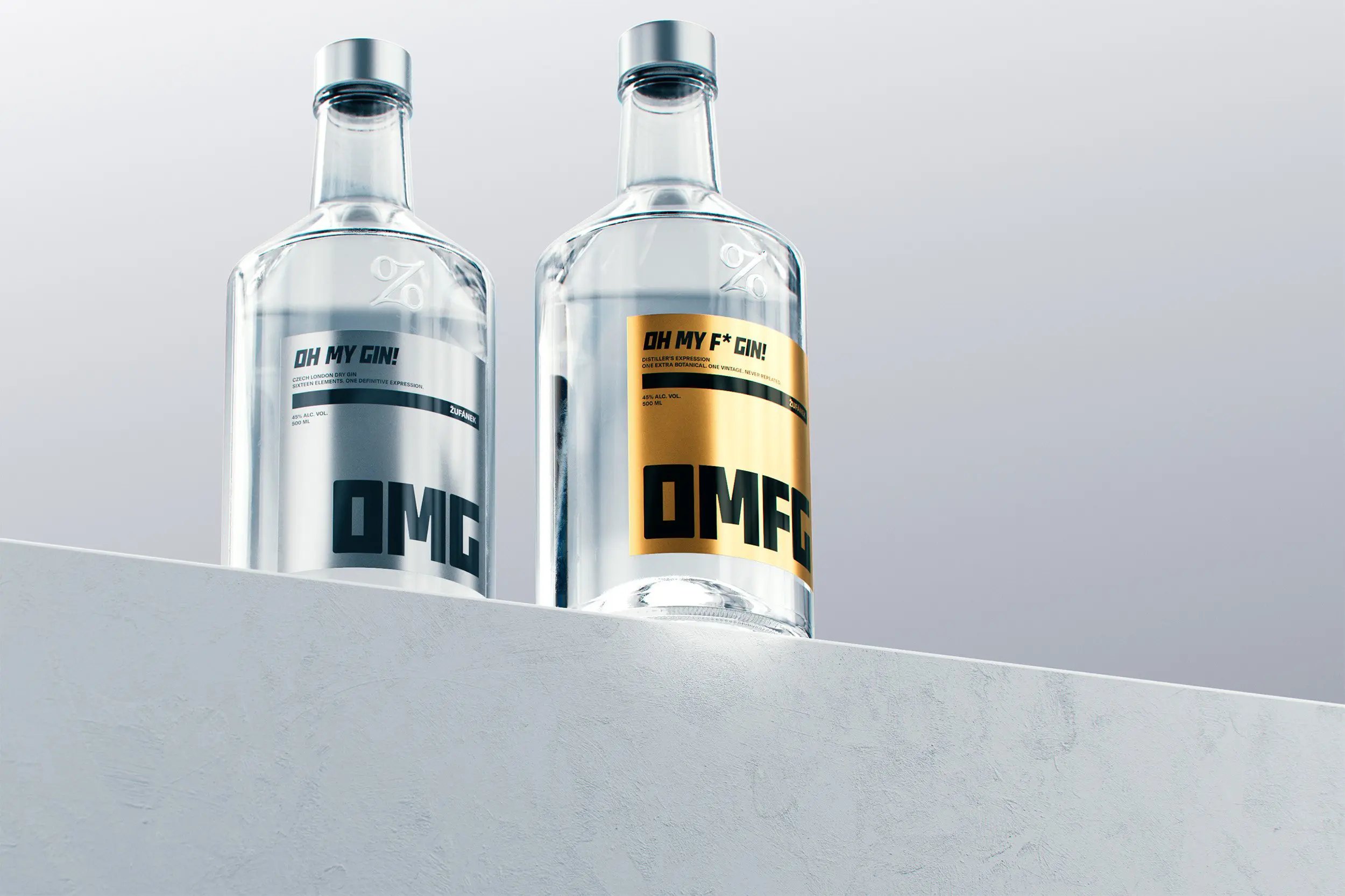 Nové etikety pracují s minimalismem, jasnou typografií a důrazem na podstatu. OMG je prezentován jako náš definitivní výraz stylu London Dry. OMFG jako ročníková interpretace, která každý rok přináší jednu novou botanickou složku a nikdy se neopakuje. Každý ročník je originálem – palírníkovou vizí.